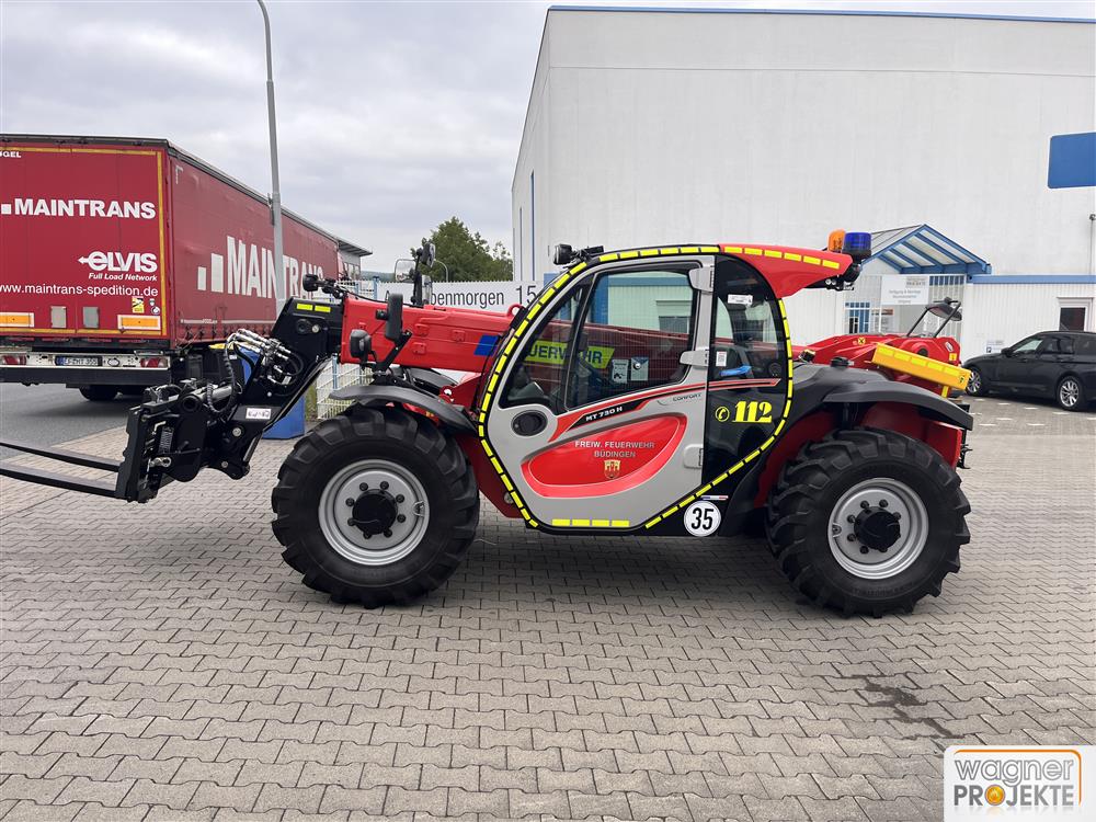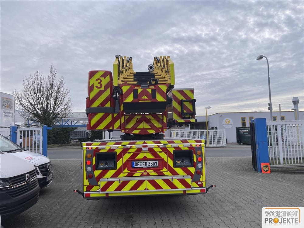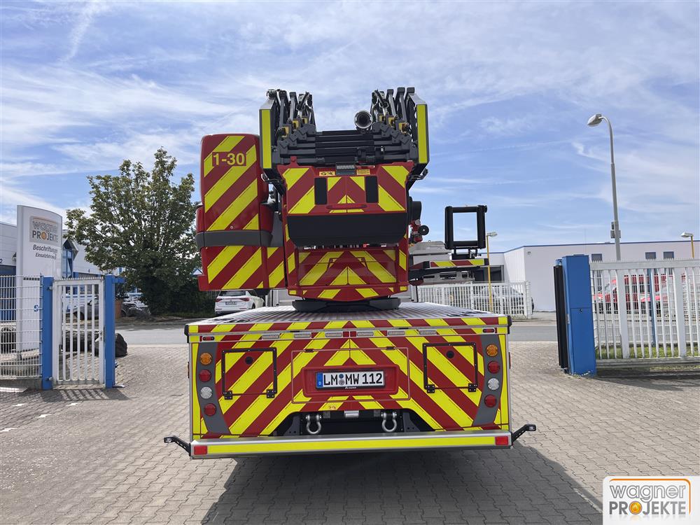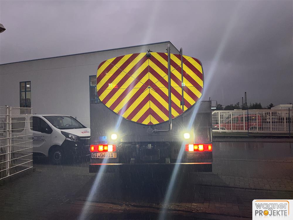 - Warnmarkierung CAD-gefertigt auf dem gesamten Heckbereich sowie am Korb vorn (Oralite VC 612 rot-lime) nach Kundenvorgaben